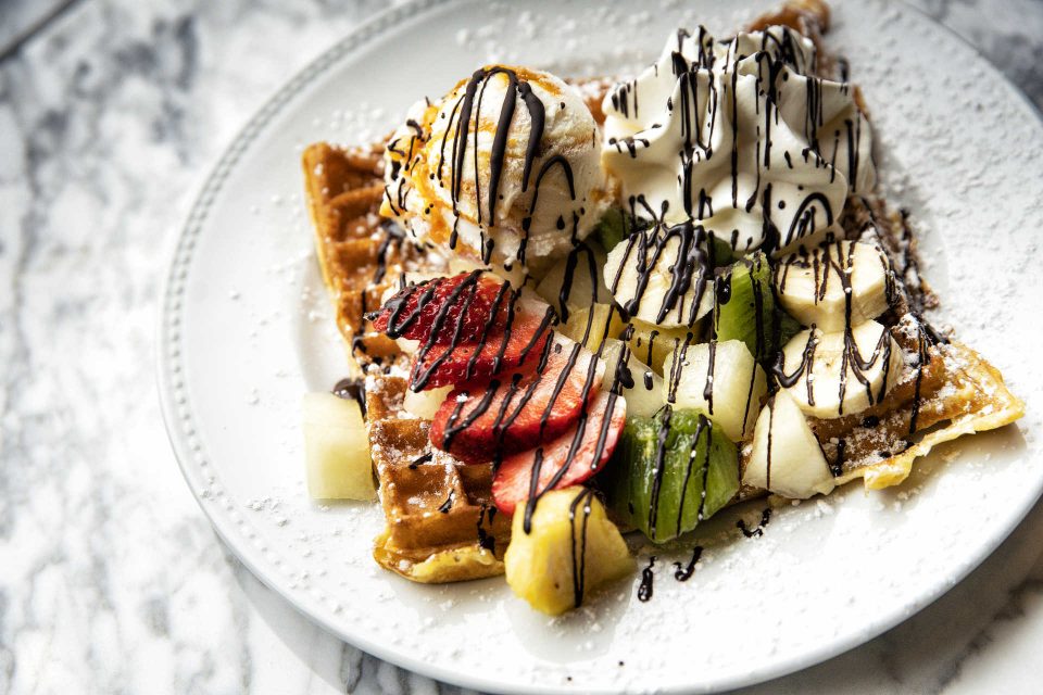 Os waffles e os crepes, de massa caseira e muito saborosa, são outra das atrações da carta, servidos ao gosto do cliente, com fruta fresca e os gelados de eleição. A gelataria tem ainda um espaço reservado ao serviço de pastelaria e cafetaria, com uma grande variedade de chás, infusões e chocolate quente aromatizado. Para um almoço ligeiro há sempre sopa, várias saladas criativas – algumas levam fruta e são servidas num crepe – e baguetes à escolha. Para um doce final, a copa Sonhos Quentes, que leva gelado, natas e chocolate quente, é um regalo à altura da estação.