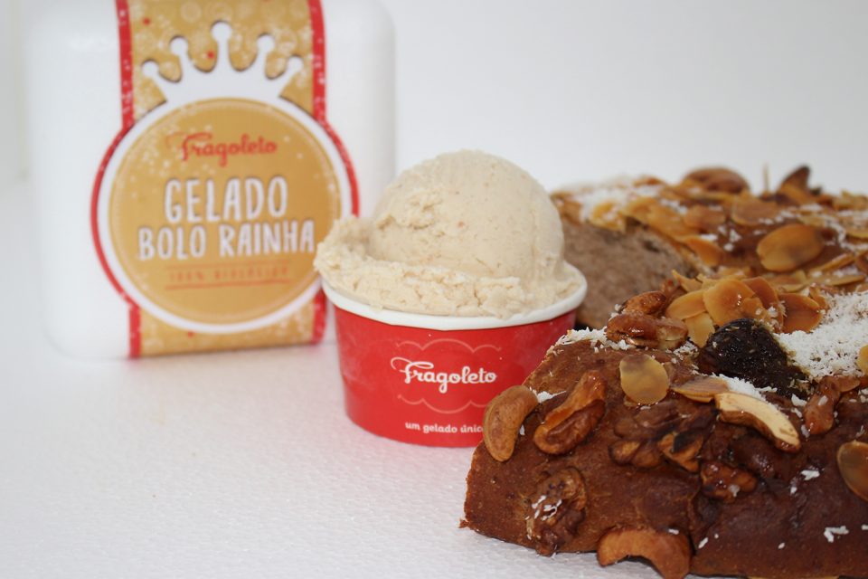 O aroma e sabores a frutos secos (noz, caju, passas e amêndoas) caraterísticos do bolo-rainha sentem-se em pleno no novo gelado criação da Fragoleto, uma geladaria artesanal com loja em Lisboa. O gelado é 100% biológico, feito com ingredientes naturais, e pode ser pedido para comer em copo ou em cone.