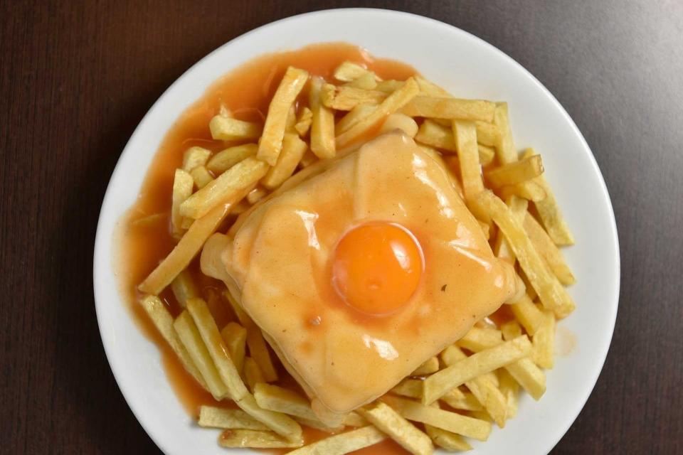 A francesinha, descrita pelo The Big 7 Traveler como “verdadeiramente única”, leva linguiça, bife ou salsicha fresca com pão coberto de queijo e regado com molho de cerveja feito todos os dias. O ovo estrelado e as batatas fritas a acompanhar dão o toque final ao elogiado prato.