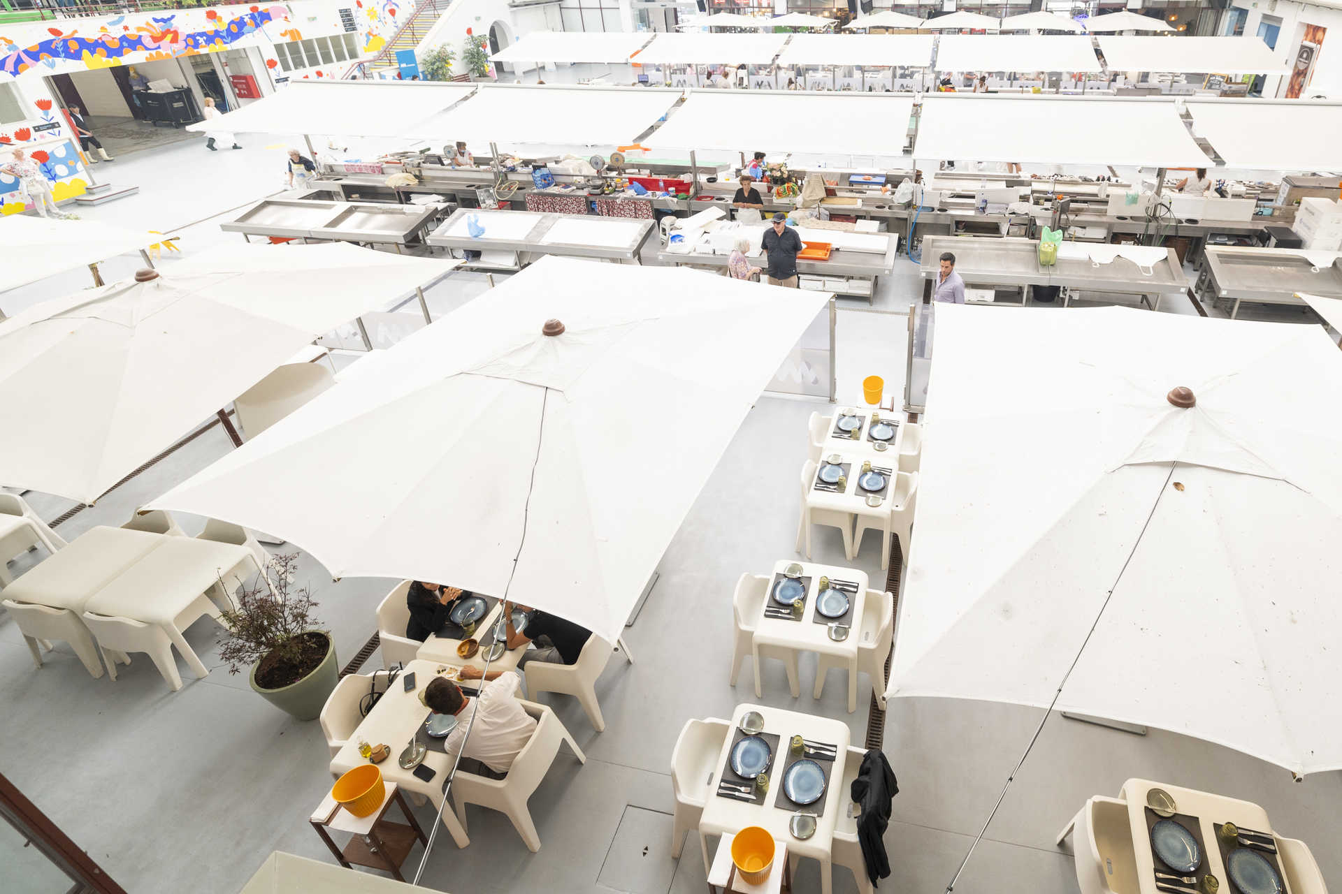 - Esplanada do restaurante e bancas de peixe no Mercado de Matosinhos (Fotografia de Adelino Meireles)