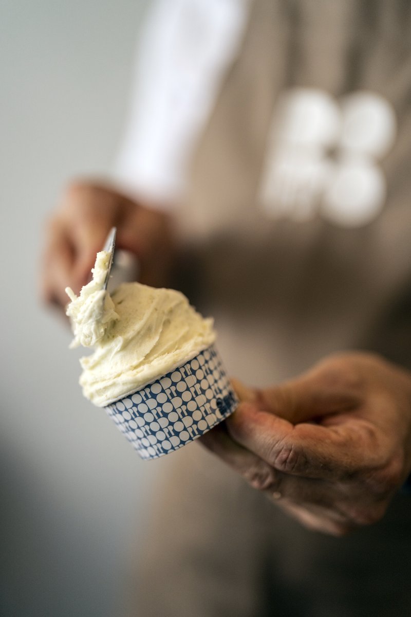 Por agora, Fernando acena com outra sugestão bem fresca: o sorvete de lima, gengibre e alecrim, que atrai muitos clientes, por cada um dos elementos: “Há os que gostam da lima, os que gostam do gengibre e os que acham graça ao alecrim”. Trata-se de uma opção vegana, como outras em lista. Também existem propostas adequadas para intolerantes à lactose e ao glúten, e mesmo “sugar free”, prossegue o responsável pela Doppo, que tem em conta a sazonalidade dos produtos. Por exemplo, o sabor a melão e Earl Grey, quando acabar o melão, salta. Costuma haver entre 22 e 30 sabores disponíveis, que podem ser levados para casa, em caixas, e apresentados noutros moldes. Uma das propostas que têm tido mais saída é a pavlova, que ao merengue junta chantili, fruta e duas bolas de gelado.