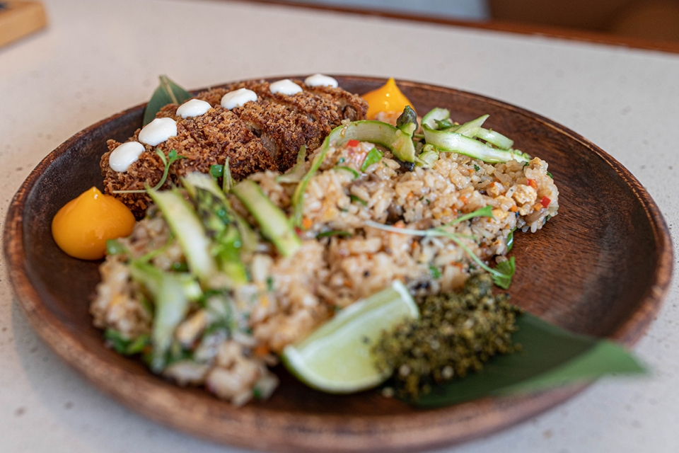 Carpaccio de novilho com ovo de codorniz; taco de salmão com ovo de codorniz; poke de lombo de atum e kimchi; poke de vazia de kobe e foie gras; pad thai de tataki de atum e katsuobushi; e nasi goreng com tonkatsu de porco preto ibérico são as novidades que se podem provar no restaurante. Para sobremesa, há um novo mil folhas de chocolate branco e maracujá com gelado de fava tonka.