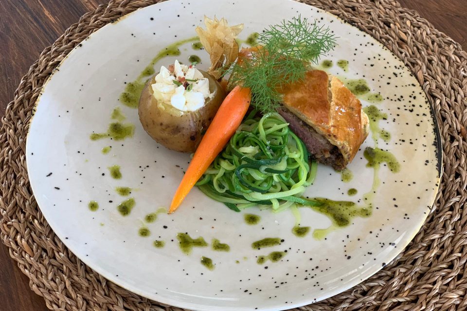 Segundo Patrícia Veiga, da Grão de Bico Catering, a ideia é que o menu – desenhado para duas pessoas – seja entregue em casa da mãe contemplada, surpreendendo-a no próximo domingo. Nenhum detalhe foi deixado ao acaso no que toca à sofisticação do momento, desde o copo de vidro em que é entregue o sumo até à possibilidade de adicionar uma garrafa de espumante Luís Pato por mais 10 euros.