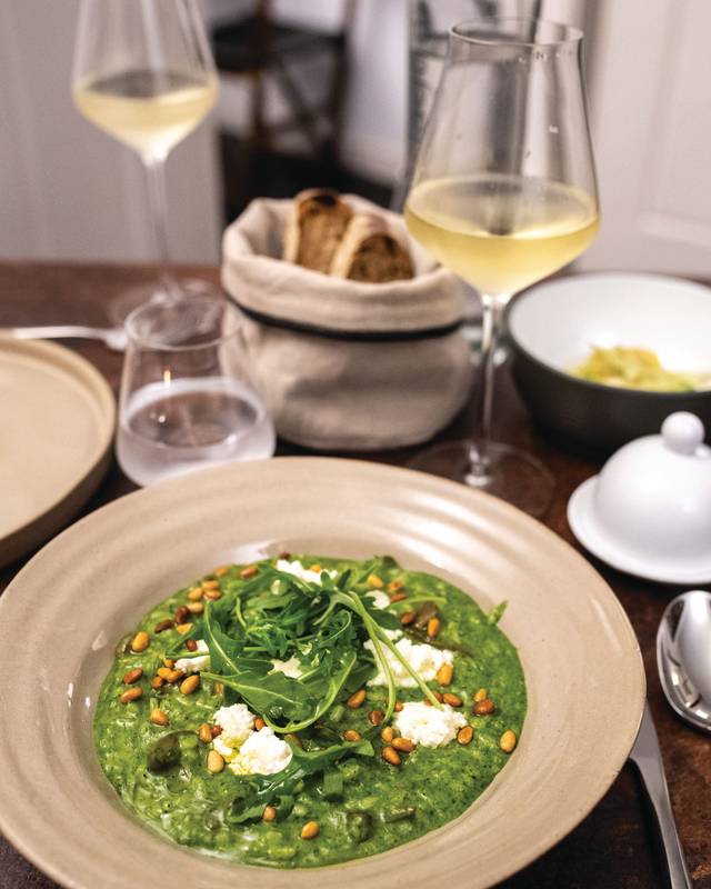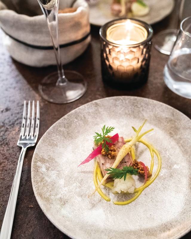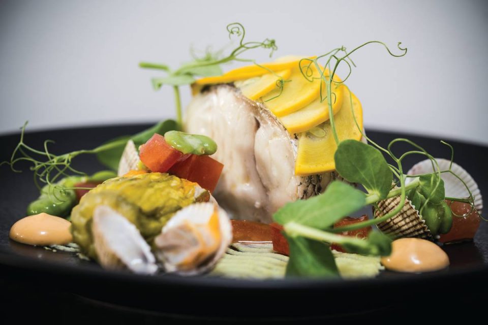 No menu, destacam-se nas entradas os delicados raviolis de ricota, alcaparras e azeitonas, tomate cherry e água de tomate e o carpaccio de dourada, supremo de clementina, gel yuzu e vinagrete de citrinos. Já nos principais, menção seja feita ao irresistível ritoso de pimenta fumada, sardinha com limão, paprika e levístico e ao lombo de porco preto com textura de batata, molho de carne e anchova.