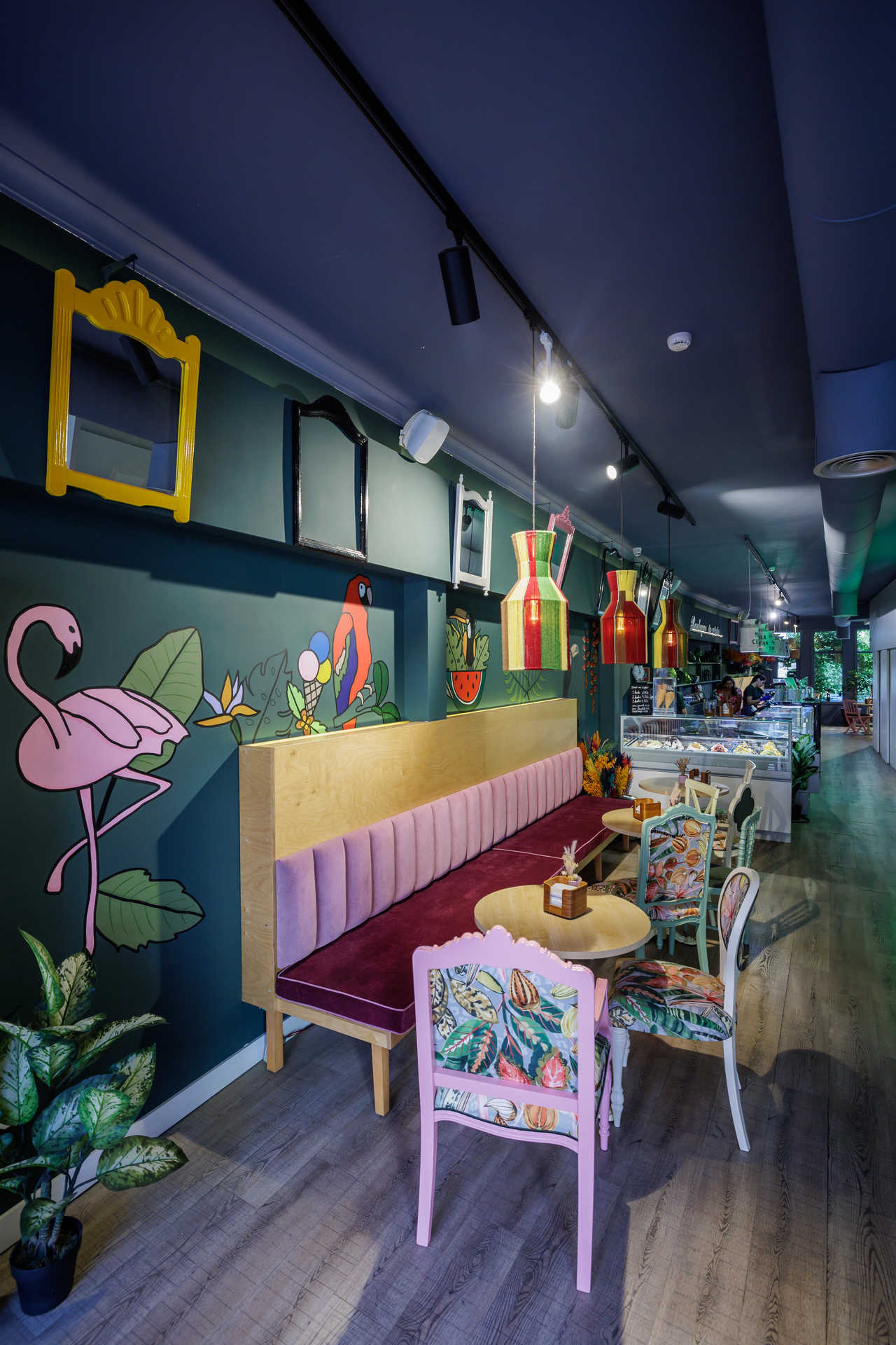 O gelado bandeira da casa é uma combinação de iogurte com uma calda, espécie de floresta negra, feita a partir das cerejas originárias da Emilia-Romagna, Itália. Uma fusão de doce com fruta, ligeiramente picante e desafiante para o paladar. Os diversos tipos de chocolate e, principalmente, o pistacho siciliano são outros sabores que nunca faltam na arca daquela gelataria.