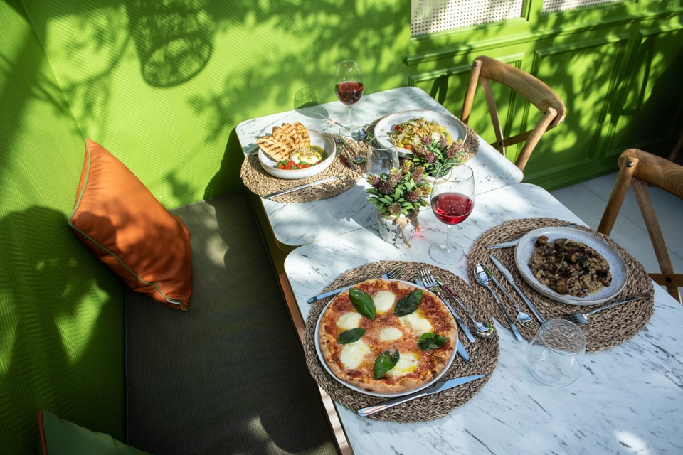 A carta foi aumentada também com seis pastas e pratos tipicamente italianos, como a beringela à parmigiana e a lasanha, que se juntaram assim às pizas, cuja massa leveda durante 48 horas, no mínimo. As pizas de estilo siciliano, com um rebordo de altura intermédia, recebem o molho preparado com tomates San Marzano, mozarela fior di latte, presunto de Parma, chourição picante, legumes ou cogumelos. Há opções clássicas, caso da Capricciosa e da Diavola, e criações da casa, que incluem a Júlio César – “é a salada César numa piza” -, e a Funghi, com uma invulgar base de natas negra, quatro tipos de cogumelos, azeite de trufa e orégãos.