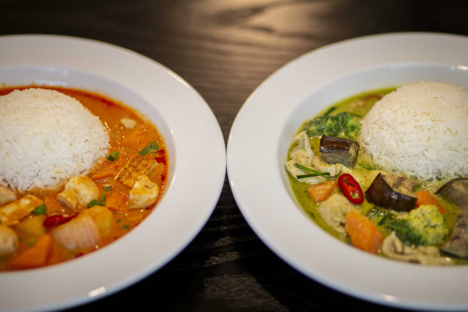 A não perder é a refrescante salada som tum, com vegetais, amendoins e papaia verde, e o típico pad thai. Apesar de os noodles serem uma herança japonesa, o povo tailandês adaptou-o ao seu paladar com pasta de tamarindo, alho e chalota. O prato leva ainda ovo, rebentos de feijão mung, cenoura, cebolinho e amendoins, criando um crocante muito agradável que é transversal a quase todas as receitas. Para quem procura algo quente e reconfortante sugere-se passar os olhos pelos caris. O caril vermelho com ananás acaba de entrar na carta, mas há que destacar o Massaman, que ocupa o primeiro lugar na lista das 50 melhores comidas do mundo, elaborada pela CNN Travel.