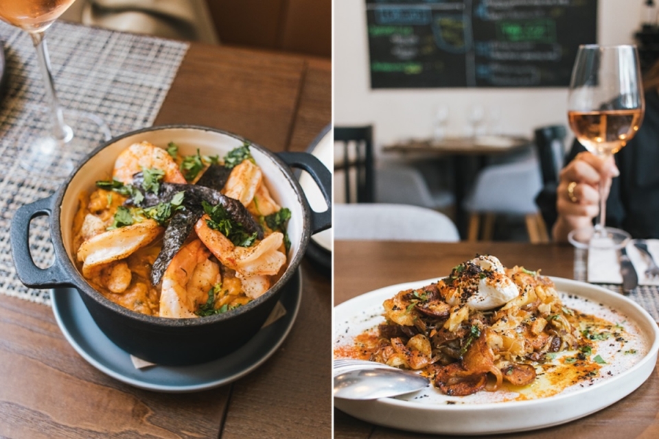 Agora que os dias mais quentes estão a chegar em força, há uma nova carta para provar, entre petiscos e pratos mais musculados, sempre em doses bem servidas, ao almoço ou ao jantar. A sopa de tomate com ovo escalfado e crocante de azeite e alho (6,50€) é uma das novidades, substituindo a sopa de castanhas da casa; e o ceviche de corvina com batata-doce e maracujá (11€) traz agora nova frescura à ementa, escrita à mão numa das paredes do restaurante situado na Rua de São José. Além disso, o bacalhau lascado com cebolada, batata à padeiro, ovo escalfado e azeitonas (17,5€) é outro dos reforços.