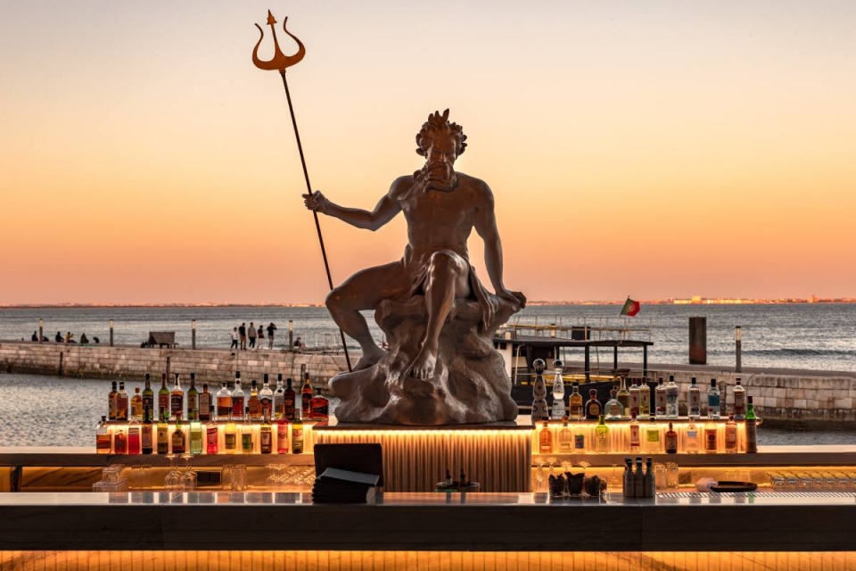Sentado num rochedo enquanto empunha o seu tridente, Poseidon, o deus do mar na mitologia grega, vigia atentamente o bar em mármore, no centro do deck exterior em madeira, pintado de laranja ao pôr do sol. Do espaço anteriormente ocupado pelo Anfíbio ficou somente a estrutura projetada pelo arquiteto Carrilho da Graça, responsável pela renovação da histórica Doca da Marinha. Ao assumir a exploração deste restaurante – a 52.ª abertura em 30 anos de carreira -, Olivier da Costa mudou tudo, criando o que diz ser o seu conceito “mais português” de todos.