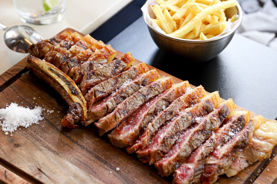 Esta carne de novilho com 250 gramas é servida com batata frita e um molho à escolha. Também há hambúrguer, picanha do Uruguai, vazia black angus, carré de borrego da Nova Zelândia, frango assado com molho de churrasco e batata frita e um clássico magret de pato, batata frita e molho de laranja e mel. Nos cortes para partilhar, ambos de um quilo, a casa sugere chuleton e tomahawk com dois acompanhamentos.