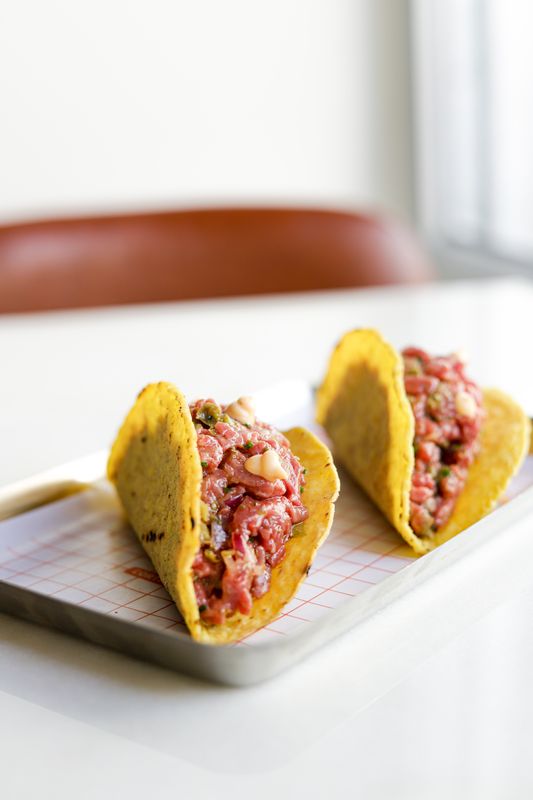 Croquetes de novilho com maionese de mostarda, tacos de tártaro de novilho com lima e tougarashi, txistorra (linguiça basca) grelhada no josper com tostas, e carpaccio de entrecôte trufado com 50 dias de maturação são alguns dos petiscos que estão agora disponíveis no Cortesia, em Campo de Ourique, todos os dias entre as 16h e as 19h – horário em que a cozinha costumava estar encerrada, entre o almoço e o jantar.