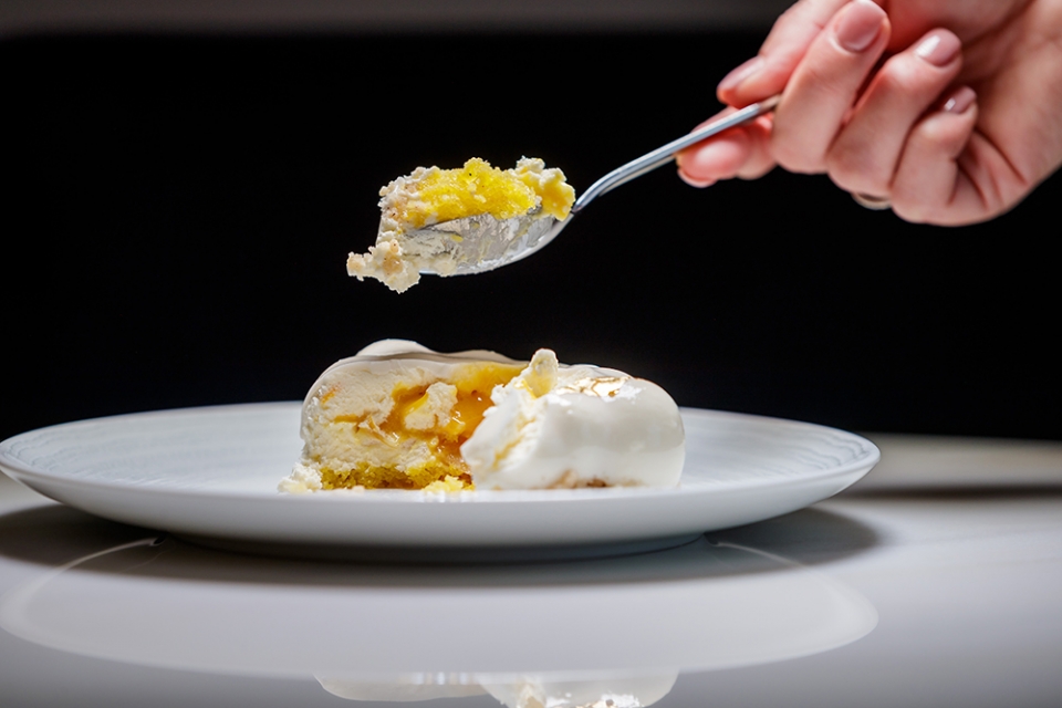 A seleção de seis sobremesas que todos os dias preenchem a montra varia de mês para mês, e alia técnicas de pastelaria francesa a sabores bem conhecidos dos portugueses. É o caso das natas do céu que ali tomam a forma de uma nuvem, composta por um creme aromatizado com laranja, um coração de doce de ovos, amêndoa crocante e um discreto molotof.