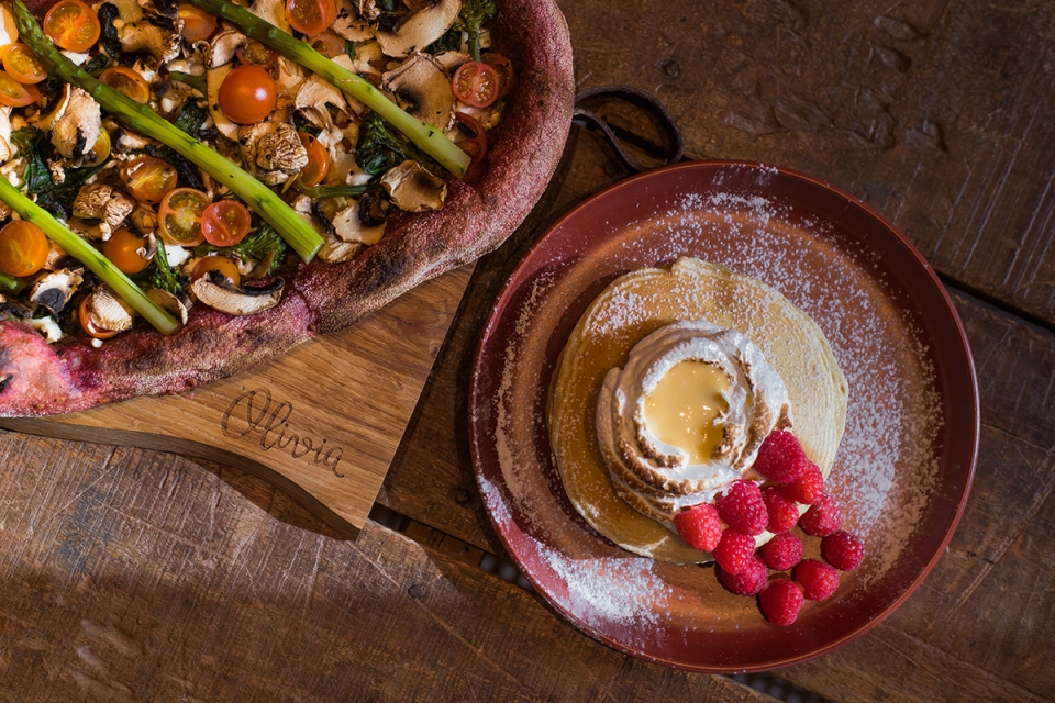 Estando aberto até à noite, o Olívia tem ainda várias opções de hambúrgueres, saladas, pizas e outros pratos mais substanciais ou para partilhar. Caril de gambas, abóbora assada com creme de queijo de cabra, sementes e pão naan e pink piza com massa de beterraba de fermentação lenta, queijo de cabra, cogumelos, tomate e legumes são alguns exemplos. Para beber há vinhos, cerveja, cocktails e bebidas coloridas para completar a fotografia à mesa, como kombuchas (bebida de chá fermentado), sumos, smoothies e cafés.