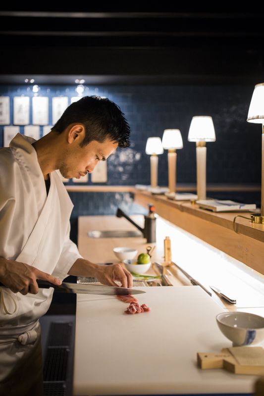 Depois de apresentar os peixes sobre gelo, numa caixa de madeira, o chef monta as peças com delicadeza, maximizando a textura e sabor do peixe com soja, vinagre e sal na medida certa. Todos os pormenores contam, tal como o arroz japonês servido à temperatura tépida. Nos menus de 12 ou 17 momentos são servidas peças como rolo de sardinha marinada em vinagre com folha de shiso, sésamo, cebolinho e gengibre e salmonete braseado, pincelada com molho do próprio fígado. No copo há sakés e cervejas japonesas. O paraíso de muitos.