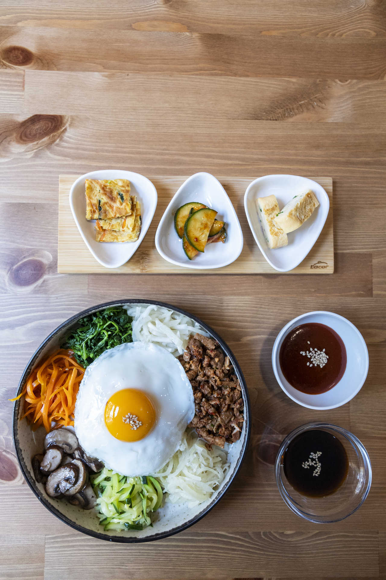 Neste que é o seu primeiro restaurante, um espaço pequeno e despretensioso, de paredes cor de laranja, servem pratos multicoloridos, tendo por base ingredientes como verduras, carne, arroz e kimchi (um alimento fermentado, feito com vegetais, que tem múltiplas aplicações e, ali, é de confeção própria).