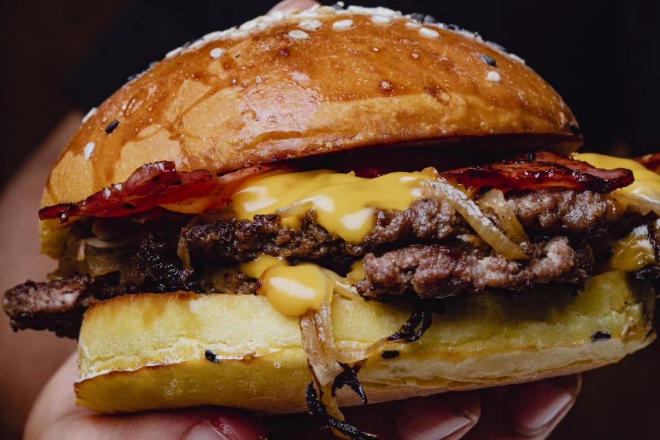 Dois hambúrgueres esmagados contra a chapa quente – para aumentar a caramelização e o sabor -, recheiam um croissant francês, na companhia de queijo cheddar derretido, cebola na chapa e maionese de alho negro trufado. Esta composição chama-se Franz, é uma das mais recentes adições à carta do Holy Sandwich Shop, e já se tornou um favorito.