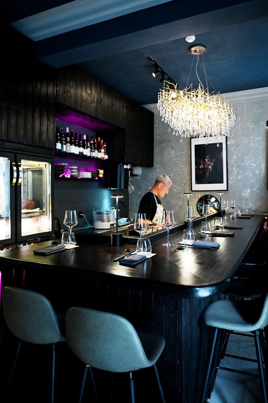 A experiência no Irú, aberto apenas ao jantar, rege-se por turnos de uma hora e meia às 19h e às 21h30. O espaço, decorado com um grande candeeiro dourado suspenso sobre a barra de oito lugares, é pequeno, mas aparentemente não atrapalha o desempenho de ambos. “A nossa base é de sushi tradicional, reinterpretada por dois rebeldes”, enfatiza Pedro Lopes ao colocar o primeiro de 12 ou 14 momentos (o número e a respetiva composição podem variar): pregado cozido em soja, braseado, óleo de gengibre, gaspacho, espuma de caldo de peixe e kimchi.