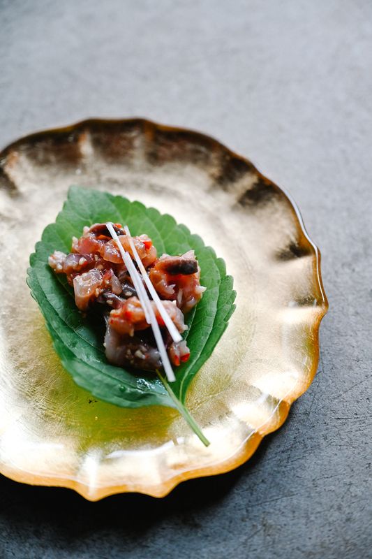 No desfile de peixes cortados fina e delicadamente existem alguns maturados em câmara fria, o que lhes dá uma textura suave e um sabor intenso. Enguia fumada em molho kabayaki, arroz temperado e maionese de sésamo; cavala curada com óleos de salsa e de gengibre e flor de sal; sashimi de lírio com soja, flor de sal e pickle de cogumelo; e tártaro de carapau com óleo de gengibre e alho francês sobre uma folha de shiso, para comer como um taco, são algumas das criações. O menu, que se pode comer à mão, gunkan, futomaki, nigiris e uma sobremesa.