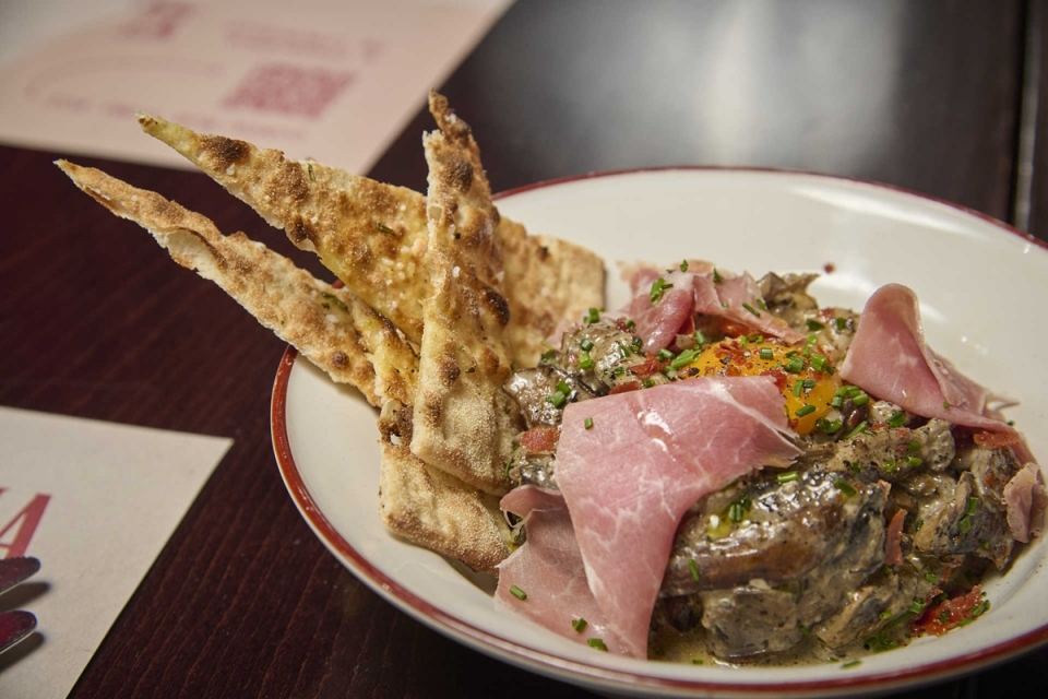 Novos são também a burrata com nduja (enchido de porco picante) com picle de couve-roxa e crumble de pecorino e rúcula; o ravióli de stracciatella e alho francês com mortadela e pistacho; a tarte de tomate doce e gelado de manjericão; e a torta de ricota e queijo parmesão, as duas últimas nas sobremesas. Dos clássicos, mantêm-se a milanesa de vitela panada com tomate assado e parmesão, as pizas romanas com farinha italiana 00 (com opção sem glúten) e as pastas feitas diariamente. Durante os dias úteis há um buffet de almoço a 17 euros/pessoa muito concorrido.