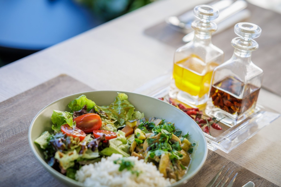 Depois de oito anos a praticar uma dieta de base vegetal, juntou a experiência, o gosto pela cozinha e a ideia de longa data de abrir um restaurante para dar vida ao Green Bistrot. “Só dou aquilo que consumo”, afiança. “O conceito é sazonalidade e frescura e por isso é incoerente ter uma carta fixa.” Daí que as propostas diárias de almoço e jantar sejam criadas consoante os ingredientes frescos disponíveis no mercado nessa manhã. “Vamos adequando a ementa àquilo que é o momento”, afirma. A variedade de vegetais existente nas bancas pode dar azo a uma feijoada de legumes, uma beringela recheada ou qualquer outro prato rico em cor e sabor. “Sempre gostei de cozinhar. A base da cozinha é o estrugido e depois é construir em cima disso”, define Pedro, que põe em prática uma cozinha apurada, inspirada em alguns pratos da gastronomia portuguesa, e exemplo de que a alimentação de base vegetal tem tudo para ser saborosa.