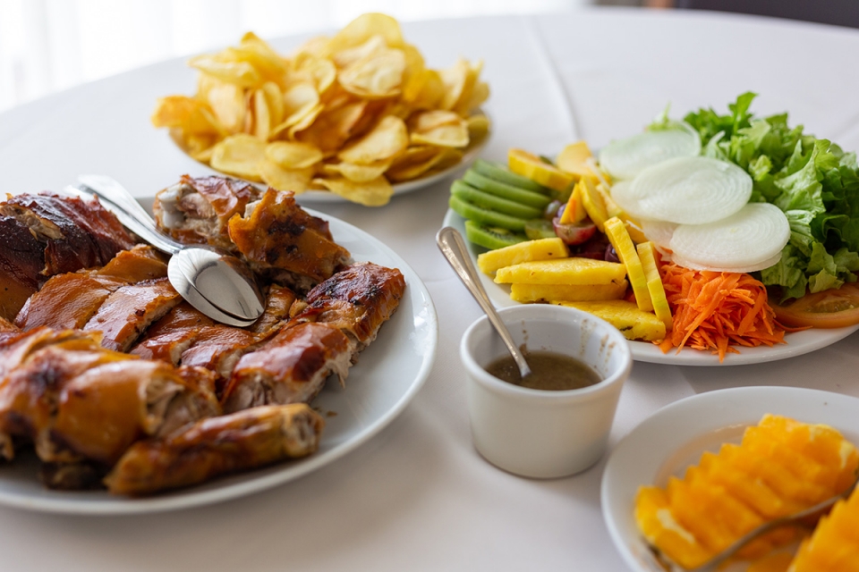 Desde logo, apostaram em especialidades tradicionais, principalmente de bacalhau, que ainda hoje continuam a ser alguns dos pratos mais pedidos – com broa, à Zé do Pipo ou à Braga. Foi após uma visita a um amigo na Mealhada, meia dúzia de anos depois, que decidiram mudar de rumo. “Foi ele que nos incentivou. Ele tinha um restaurante onde jantámos e na mesa ao lado estava aquele que disse ser o ‘melhor assador da Mealhada’. Falámos com ele – o Garcias – e trouxemo-lo para cima. Ficou na casa meia dúzia de anos e o sogro de Artur aprendeu a assar com ele. “É até hoje o nosso assador”, refere.