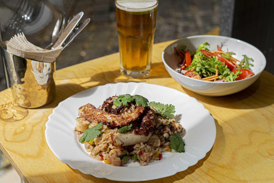 À carta, a oferta é outra e exige tempo para pensar, tal não é a profusão de petiscos confecionados no tacho, no forno ou em fritura. Além dos clássicos chouriço alentejano assado, ovos mexidos com farinheira ou moelas, Jéssica destaca os já prediletos dos clientes pica-pau de novilho com pickles caseiros, peixinhos da horta com maionese de ervas e a salada de polvo com azeite fumado – um toque que faz a diferença. “O mais diferente que temos são os