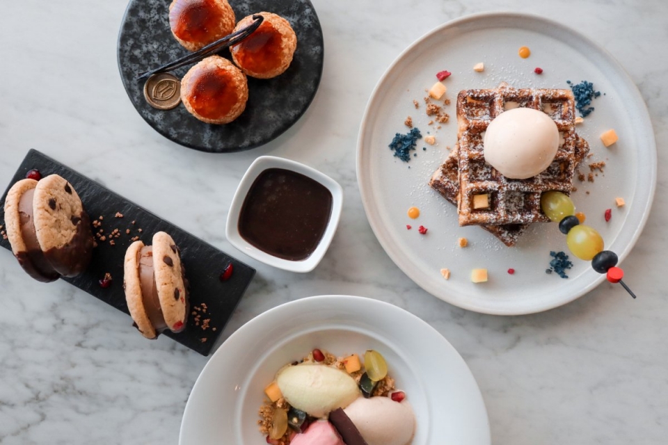 Aquele menu especial de verão, dominado por sugestões refrescantes, inclui também panquecas e waffles com gelado e frozen yogurt vegano, acompanhado por fruta, muesli, granola, caramelo e mais. Cada cliente pode personalizar os pratos ao seu gosto, adicionar texturas e sabores diferentes, escolhendo entre uma variedade de molho e toppings, como sprinkles, marshmallows ou amêndoas laminadas. Aos sabores clássicos, como baunilha, chocolate e morango, juntam-se outros mais arrojados – por exemplo, a canela, erva-príncipe, araçal ou anona.