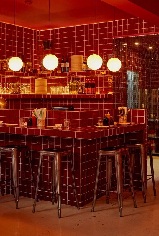 Aquilo que começou por ser um negócio vocacionado apenas para o delivery e com poucos lugares no interior tornou-se um dos mais concorridos restaurantes asiáticos do Príncipe Real. Aberto durante a pandemia, o Madam Bo foi revestido de azulejos vermelhos de ponta a ponta, com loiças, mesas e um balcão com toque de artesão, e cresceu de 12 para 26 lugares. A oferta manteve-se nos dumplings, uma comida de rua asiática que, no entender dos cinco sócios do negócio, merecia casa própria.