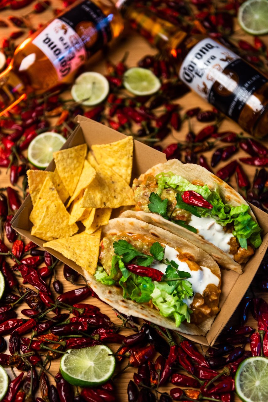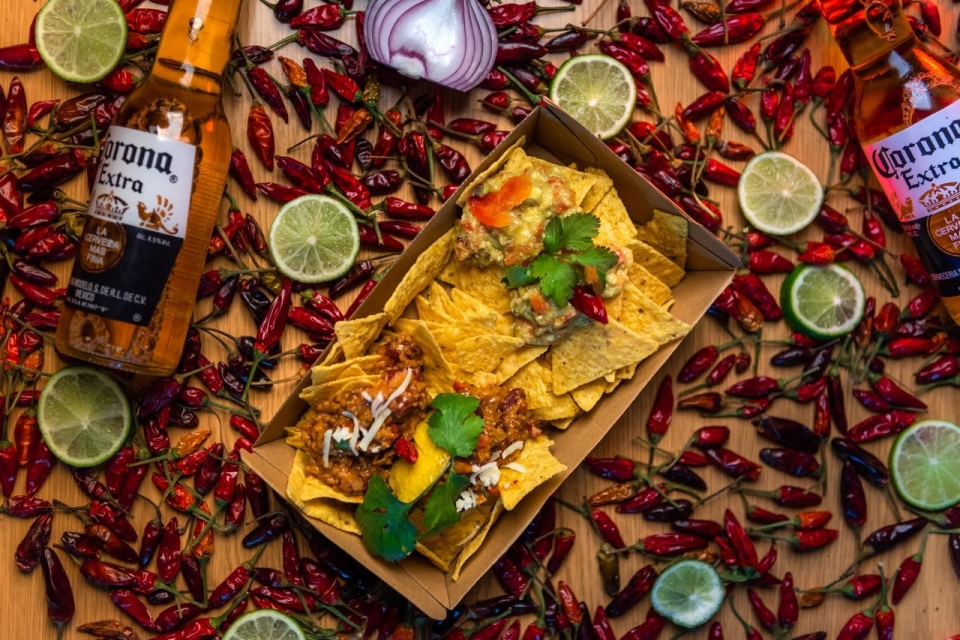 No menu de abertura estão disponíveis alguns dos petiscos mais conhecidos da gastronomia mexicana: guacamole, nachos, burritos, tacos, quesadillas e chilli, acompanhados pela típica cerveja Corona.