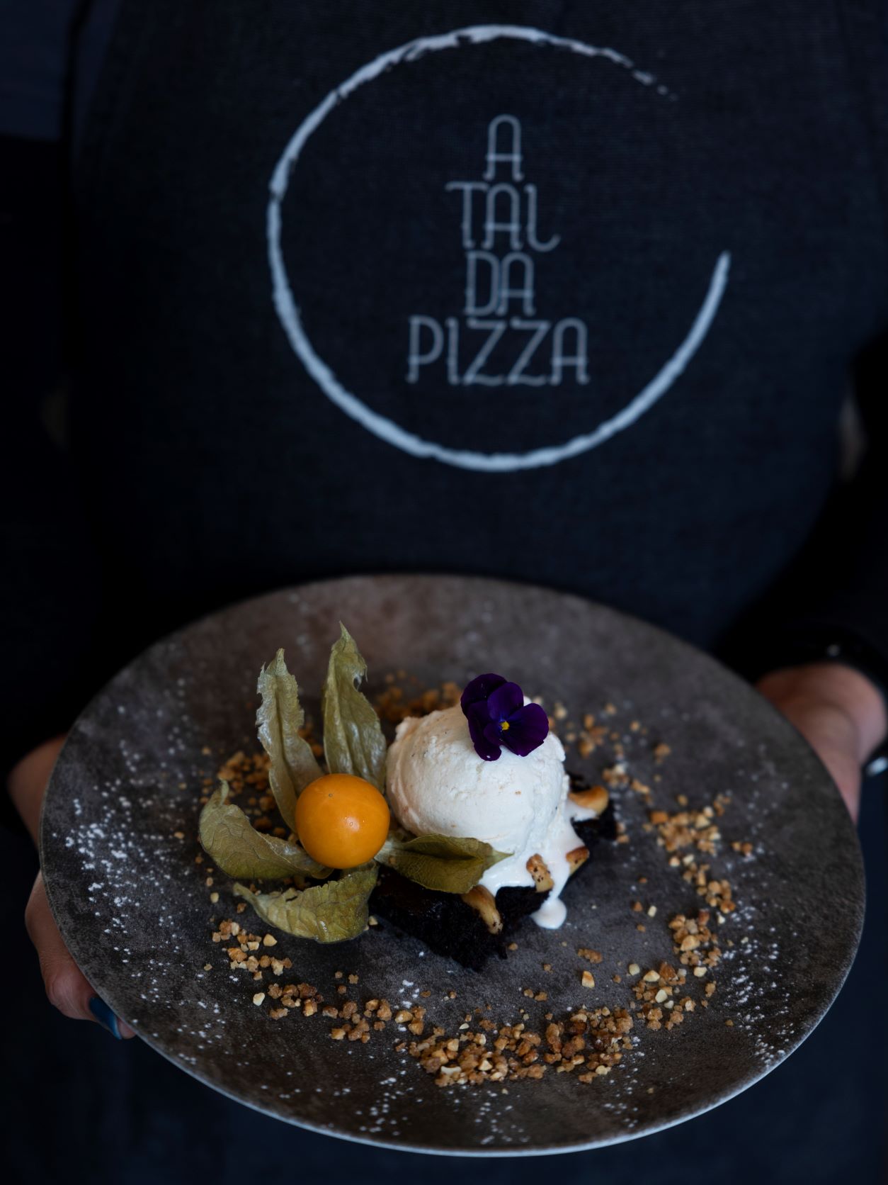 Sendo as pizas a estrela da companhia – a carta tem ainda lasanhas e saladas -, também as há doces. Uma das mais recentes adições é a D. Pedro e Inês de Castro, uma reinterpretação do clássico Romeu e Julieta, feita com queijo gorgonzola e goiabada, referência a uma história de amor portuguesa e piscar de olho ao país natal de Sandra, o Brasil. Outra sobremesa que também tem raízes do lado de lá do Atlântico é o De Pernas Para o Ar, um bolo de chocolate vegano servido com gelado de cumaru, ou fava tonka, a baunilha da Amazónia.