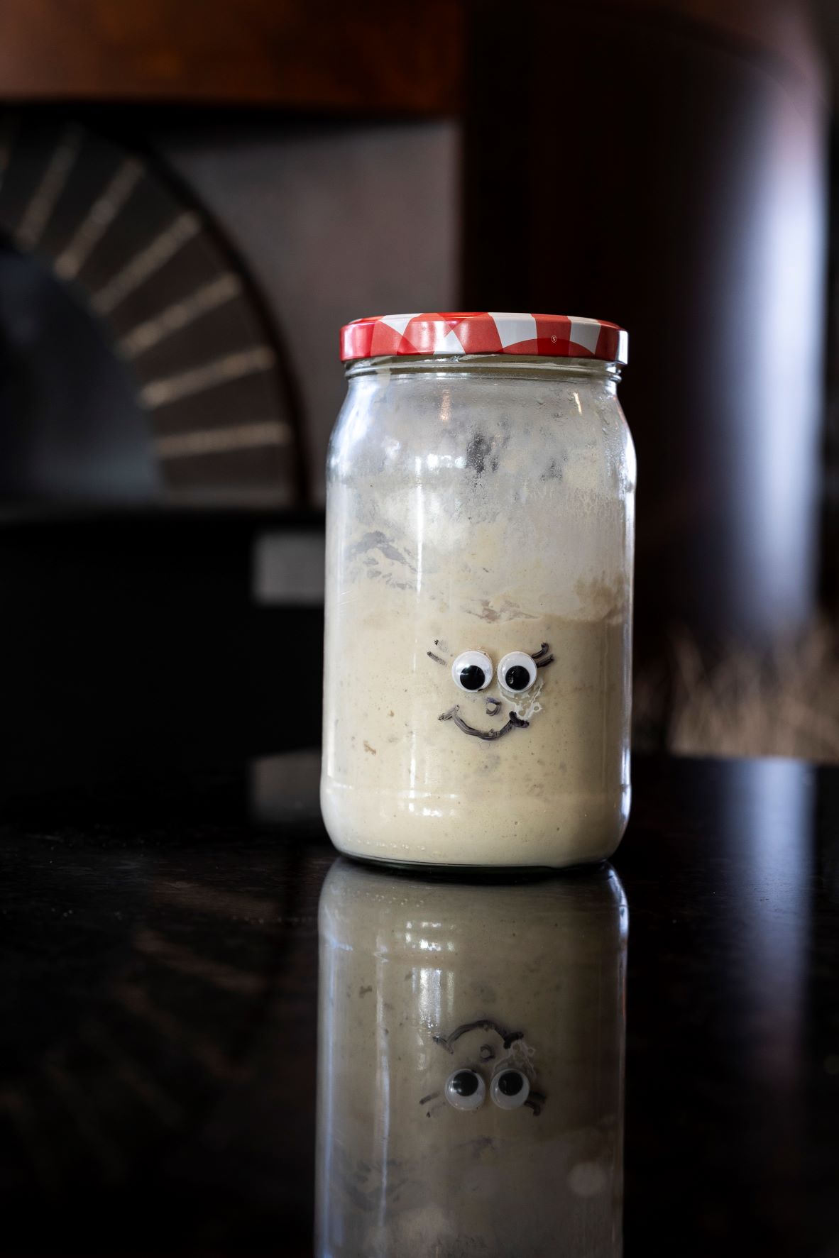 A Gertrudes é talvez o elemento mais importante da equipa desta pizaria artesanal que assentou arraiais em São João da Madeira. “Ela é a mãe de todas as pizas”, declara Tiago Campos, dono e pizaiolo d’A Tal da Pizza, projeto que partilha com a mulher, Sandra Haiduck Campos. Refere-se à massa mãe que guarda num frasco de vidro com uma cara sorridente e a que deu o nome de Gertrudes. É com ela que começa o processo de fermentação natural da massa, trabalhada no balcão à entrada do restaurante, e que dá origem a uma base fina e leve, de bordas crocantes. “As 48 horas de fermentação são muito importantes para o sabor e a textura saírem sempre iguais”, alerta Sandra.