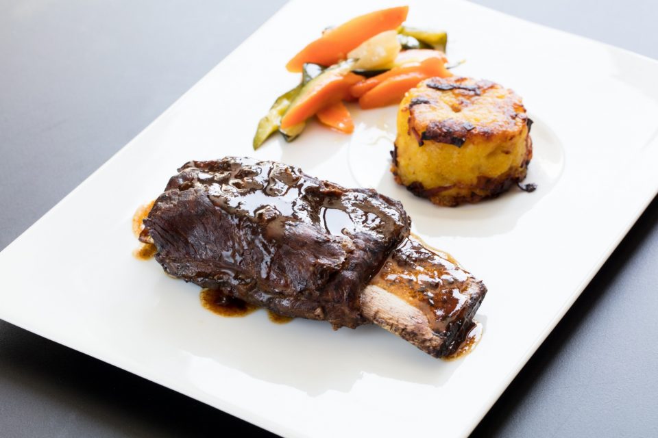 A cozedura em vácuo pode ser uma forma de lhe dar a consistência certa, mas na finalização a costela mendinha precisa da crocância de uma crosta bem trabalhada. Espantosamente, pode fazer-se em casa com óptimos resultados.