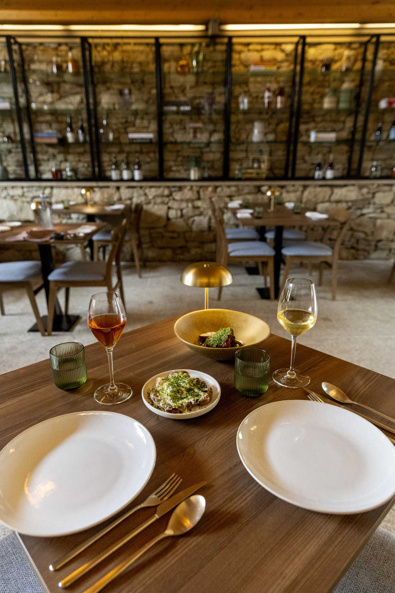 Na hora de criar este projeto, ficou assente para o casal que giraria em torno de produtos nacionais, de que são exemplo as carnes e os vinhos – de baixa intervenção e de pequenos produtores -, e em respeito pela sua sazonalidade. Daí que o menu seja atualizado regularmente, explica Hugo Portela, que trabalhou na Noruega, em Espanha e na Suíça (inclusive, em restaurantes estrelados), até regressar a casa. Passou por diferentes espaços, e estava na cozinha do Hotel das Virtudes, com o chef Tiago Bonito, quando decidiu trilhar um caminho próprio.
