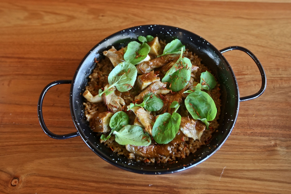 As homenagens também chegam à mesa, sobretudo nos churros de batata. São fritos e molham-se numa tomatada, inspirada na que a avó fazia, preparada com tomates assados “que ninguém quer” encontrados no mercado. Da carta, sugere-se ainda a paella, cujos ingredientes vão sendo adaptados à estação. Já foi de cubos de seitan e cogumelos, e agora apresentam-se com raízes, como a bola de aipo e a batata-doce.