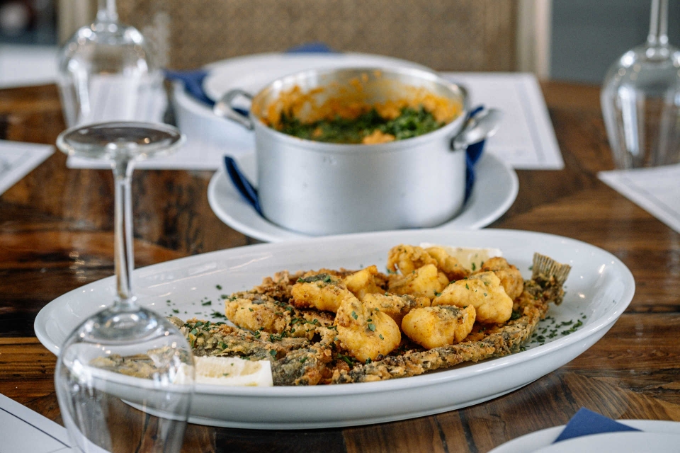 Estão lá os crocantes por fora, mas cremosos por dentro, croquetes de camarão com molho de ostras; as lulas salteadas, cobertas com um molho ligeiramente picante de azeite, alho e salsa; as petingas fritas servidas com limão; e a rica sopa de peixe, que faz as vezes de prato principal.