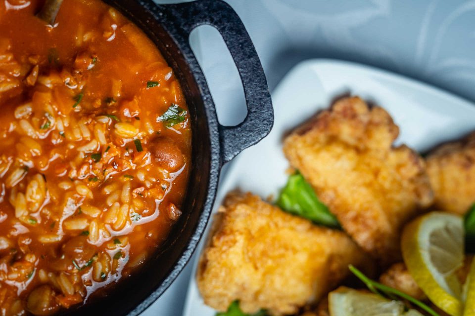 “A grande mudança, essencialmente, foi a introdução de legumes e frutas da época nos pratos e mais produtos da região”, explica Filipe. No modo de confeção, nada mudou. Ana Luísa tem mão para a cozinha, principalmente no que toca aos grelhados (o forte da casa). E exemplo disso mesmo é o naco, tenro e rosado, servido com os tais legumes também na grelha, e arroz de feijão, que acompanha com igual mérito os filetes de polvo – outra das recentes apostas da casa. A esta vaga de novos pratos juntam-se ainda o costeletão de novilho maturado e a francesinha, mas os vegetarianos também ali encontram opções à medida.