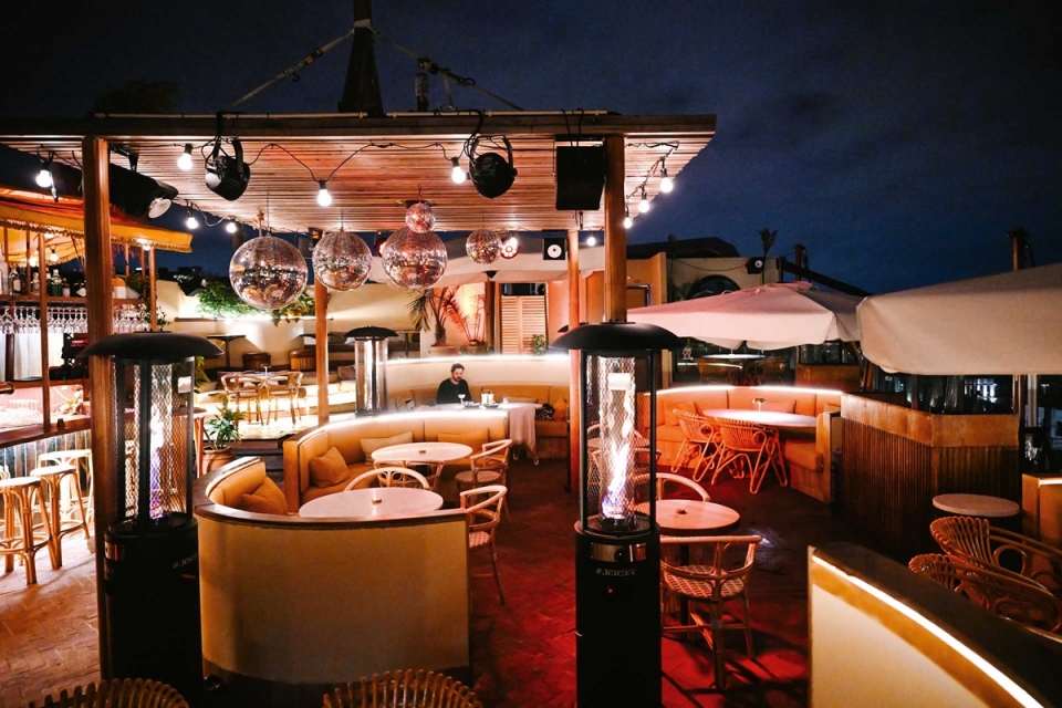 As bolas de espelho, as plantas tropicais e o painel de azulejos com motivos exóticos, alguns dos elementos que ajudam a vestir a decoração deste terraço, remetem de imediato para dias e noites longos e quentes. Mas o Mona Verde pretende ser um rooftop alfacinha para se usufruir o ano inteiro e cumpre essa missão com rigor: desde logo pela dose generosa de aquecedores e mantas espalhados pelo espaço, mas ainda mais no arranque de 2025, com a chegada para breve de uma cobertura que vai proteger grande parte da esplanada.