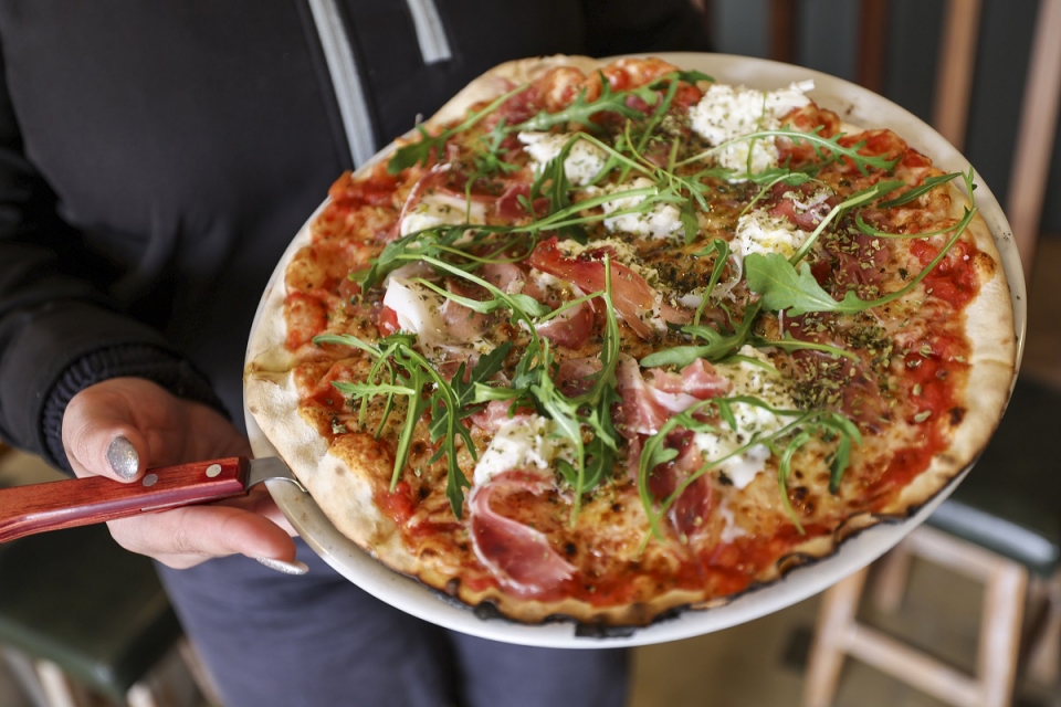 No mesmo espaço onde antes de serviam petiscos portugueses, serve-se agora uma cozinha apoiada em três alicerces: risotos, massas e pizas, algo que o grupo sentiu fazer falta à oferta desta zona. Nas entradas, aposta-se em combinações como a burrata e o pesto caseiro de caju; o queijo tallegio no forno com compota de cebola roxa; e legumes grelhados com parmesão.