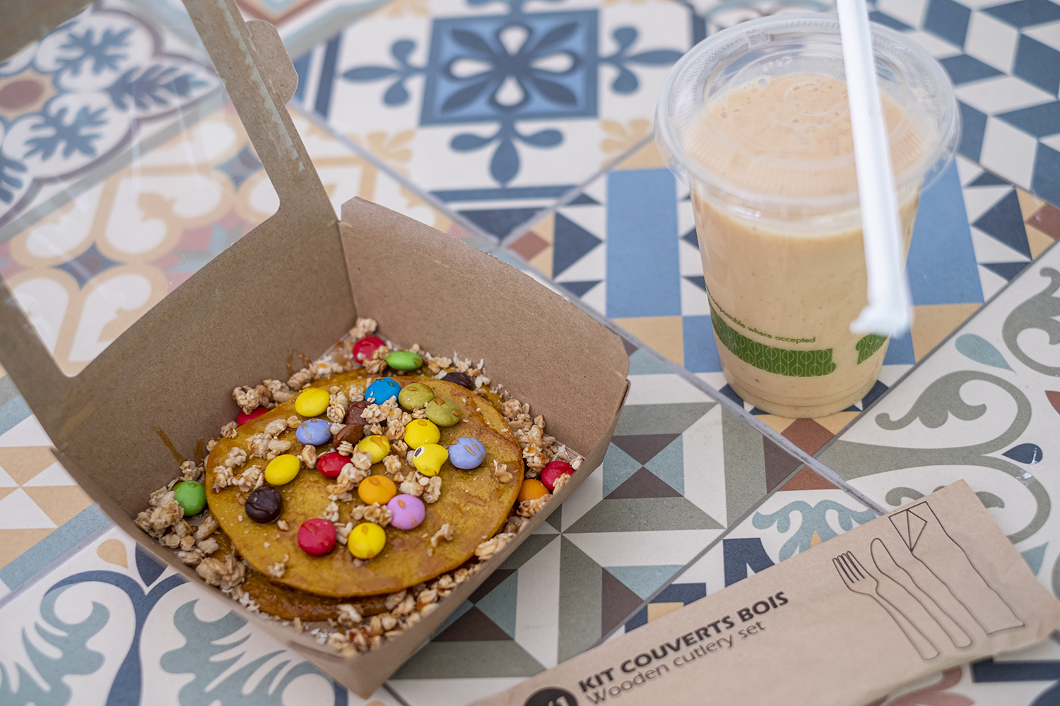 Quem preferir trincar o que come pode escolher entre cinco wraps, uma salada, panquecas de cenoura e farinha integral de aveia com coberturas à escolha, ou açaí com iogurte, fruta e granola. Para beber, optou-se por abdicar de ter refrigerantes, mas não faltam alternativas: seja café de três origens – Brasil, Timor ou Colômbia -, smoothies de fruta ou chás em folha, quentes ou frios.