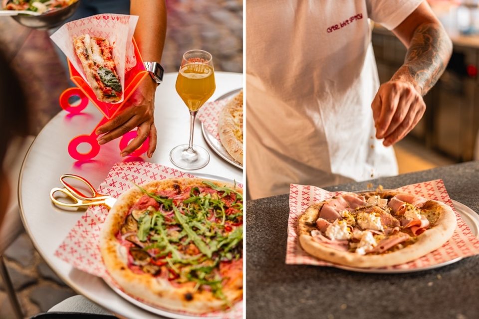 A dúzia de pizas disponível na carta – preços desde os 11 euros -, que casam ingredientes italianos premium e frescos nacionais, são uma versão mais contemporânea das pizas napolitanas. Têm rebordo alto e fofo, ligeiramente crocante e a massa mistura três grãos diferentes, incluindo o trigo barbela, “mais gastronómico e com mais notas de cereal”, explica João Novo, chef do Grupo Capricciosa, que viajou para Roma e Nápoles com a sua equipa para reforçar técnicas.