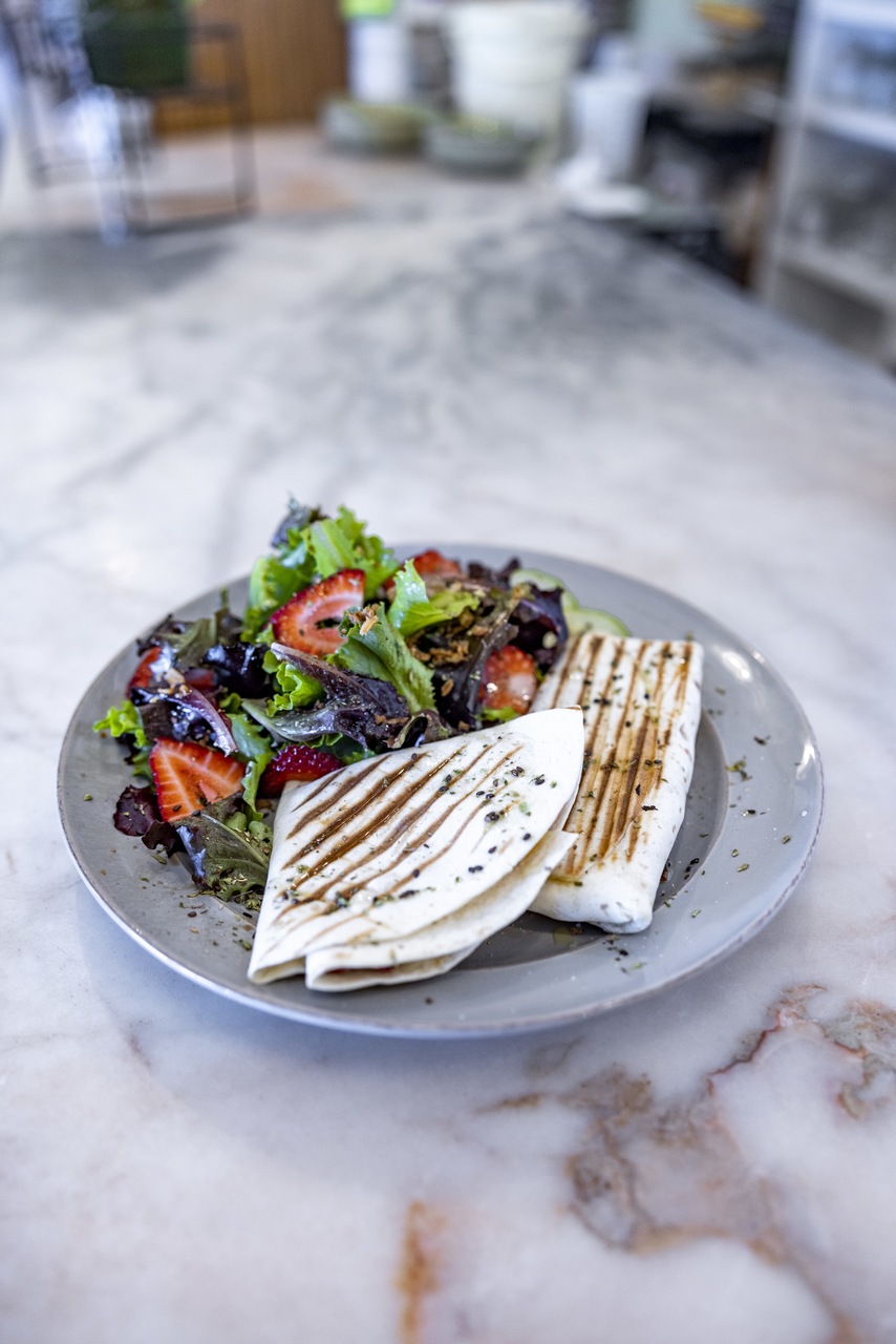 A influência daquele país, na carta, reflete-se nos tacos, apelidados de Diego, Arriba e Cucaracha; e em sugestões como a bowl de chili, arroz basmati, abacate, nachos e lima, ou o cocktail Paloma, à base de tequila. Mas fica por aí. “Não somos uma casa mexicana”, clarifica Emanuel, e sim uma cafetaria que tanto serve bagels como cacos (bolos do caco com diferentes recheios) ou croissants (brioche ou integrais, igualmente recheados). A ementa, desenhada por Carla, inclui essas e outras sugestões, disponíveis de forma ininterrupta – também ela foi pensada para ser uma companheira de todas as horas.