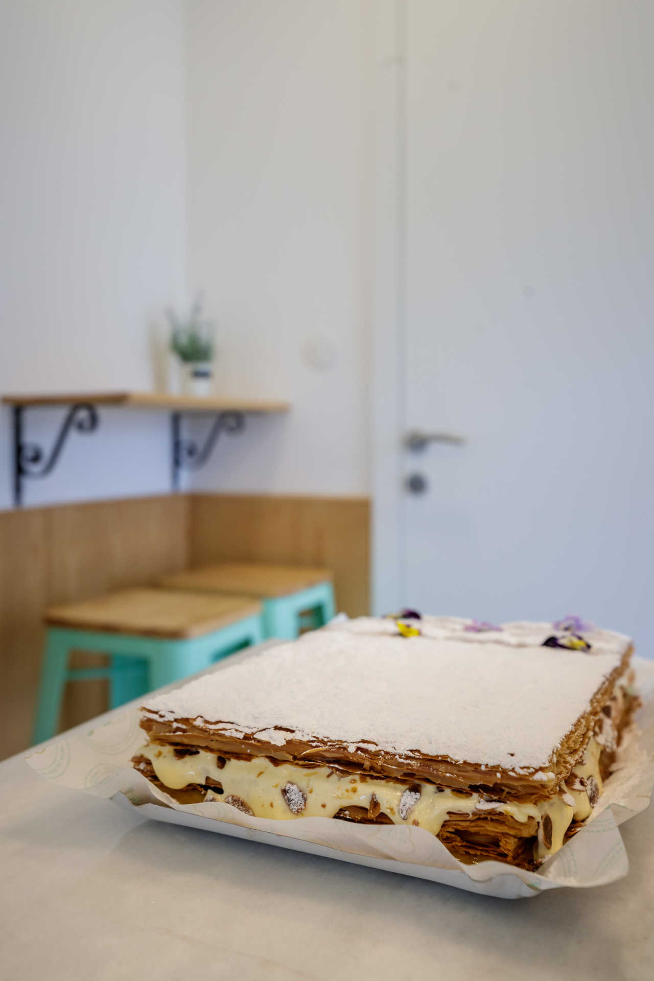 Todas essas delícias têm por base a massa folhada artesanal que Cláudia faz de raiz, respeitando o método clássico francês, que exige a utilização de manteiga – a responsável pelo sabor característico da massa – e longos tempos de descanso, que ajudam no crescimento e na formação de folhas bem finas e delicadas. “Demoro mais ou menos um 24 horas a preparar a massa, porque tem de descansar várias vezes”, explica Cláudia. O que faz com que seja necessário encomendar os bolos com alguma antecedência. Os cremes também são feitos pela doceira, à semelhança da massa, com recurso a ingredientes naturais – livres de aditivos, corantes e conservantes.