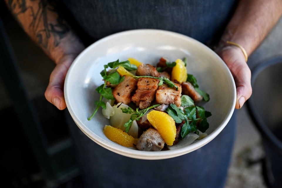 Há vários anos a viver em Lisboa, Filipe Camacho foi assistente de decoração em filmagens e livreiro, ou não fossem as artes um dos genes da família, com um avô que foi cantor e um pai engenheiro de som. O percurso entre os tachos começou há 11 anos, num misto de “vontade, necessidade e acaso”, quando trabalhou na cantina de um amigo.