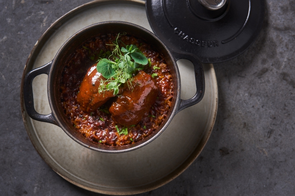 A oferta de peixe inclui um aveludado À Moda do Porto, inspirando-se nas tripas à moda da cidade, em que os protagonistas são a feijoada de feijoca de sete anos e a plenitude do bacalhau fresco – lombo, tripas, bochechas, línguas, pele (esta crocante) –, tudo salpicado com óleo de enchidos. Na carne, atente-se às invernosas bochechas de porco preto glaceadas, com cremoso arroz de forno e carqueja.