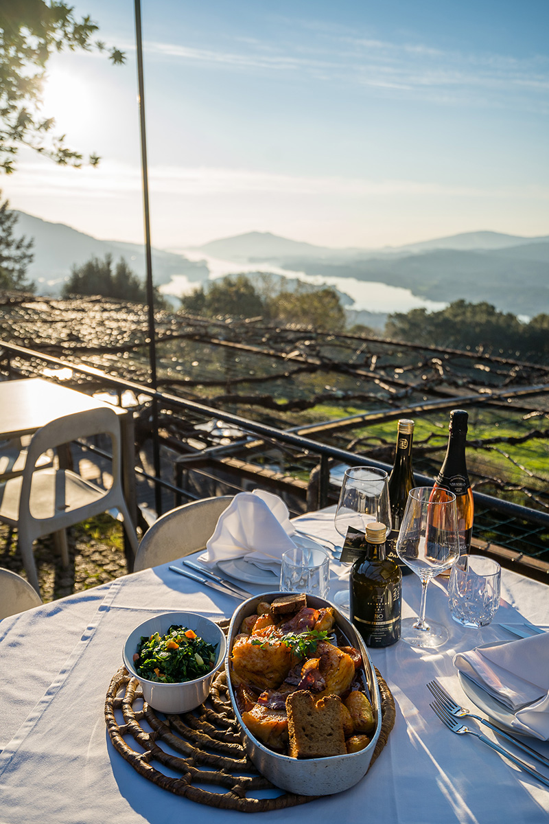 A paisagem sobre o rio Minho, as ilhas da Boega e dos Amores, e os vinhedos de O Rosal, na margem espanhola, entram pelos olhos dentro de quem chega ao restaurante Casa das Velhas, em Vila Nova de Cerveira. A vista só por si já regala, mas o passo seguinte à mesa faz o pleno. Os anfitriões são a família Ferreira: João na cozinha, a mulher Rosemary e os filhos Francisco e Júnior na sala e esplanadas.