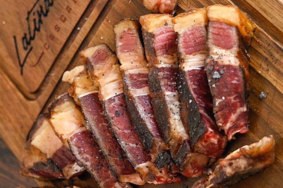 O que apresenta no Latina Grill é, pois, resultado desse vasto percurso profissional. Na carta avultam carnes de várias raças e países, como a umi do Uruguai, a wagyu da Austrália, a kobe do Japão, a black angus dos Estados Unidos da América (com 30 dias de maturação), a turina nacional (com 40 dias de maturação), e a rubia gallega (com 50 dias de maturação). Em matéria de cortes, refiram-se o entrecôte, tomahawk, rib-eye, filet, chuleton e outros, como o da vazia ou picanha e a espetada do lombo. Quem quiser pode, no entanto, escolher a carne da sua preferência, a peso, e solicitar ao chef o corte preferido.