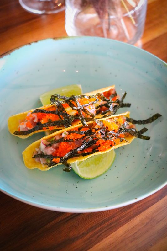 A carta foi criada pelo chef executivo Natanael Silva, em torno de quatro eixos – fogo, terra, mar e orgânico -, assume-se portuguesa e mediterrânica, mas não se inibe em ir buscar influências internacionais. Disso são exemplo os ovos rotos trufados com presunto, a burrata crocante recheada com pesto e o taco de peixe do dia com abacate e maionese de wasabi, ideais para partilhar.