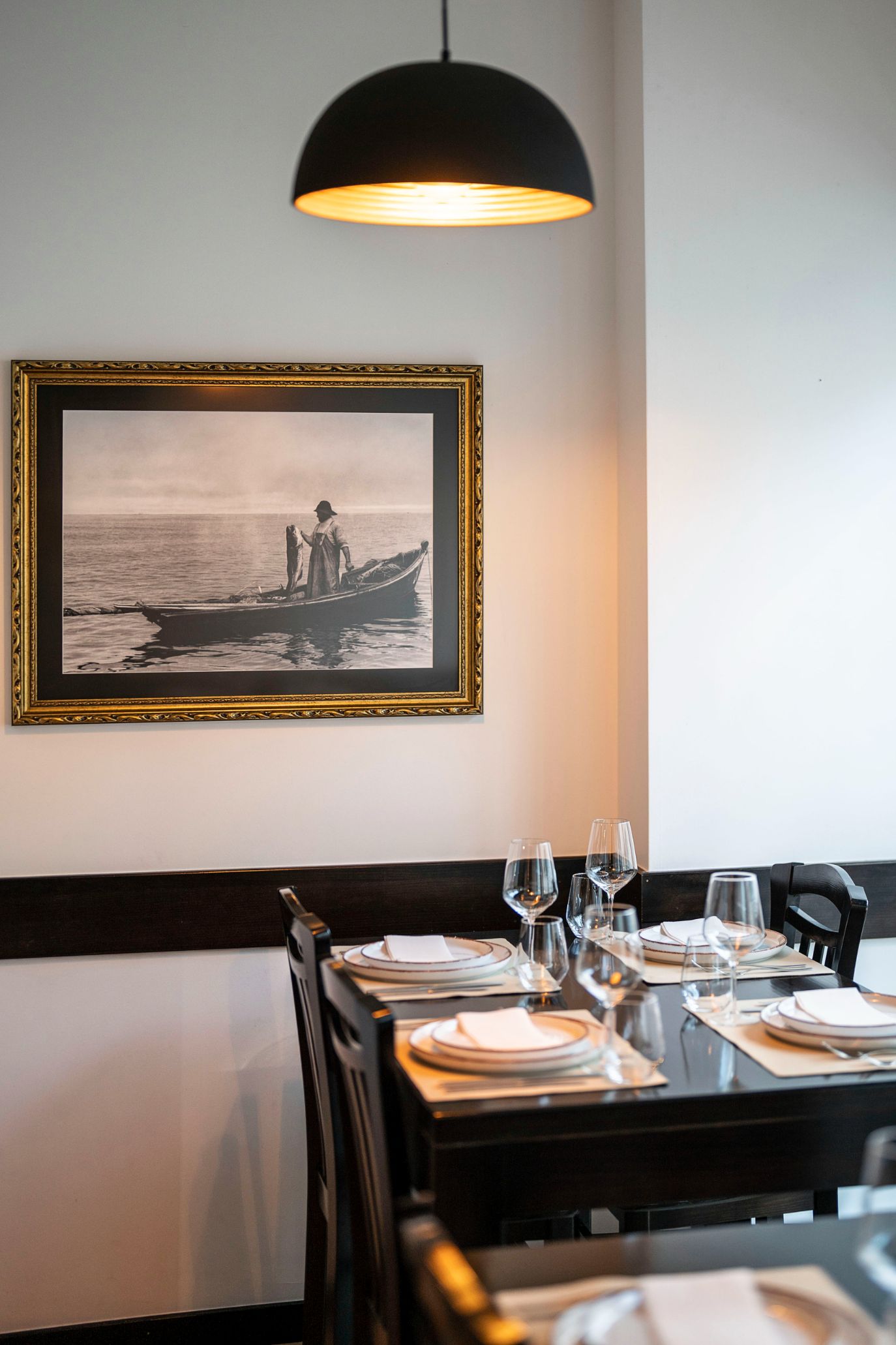 - Nas paredes do restaurante há fotografias a preto e branco da pesca do bacalhau. (Fotografia de Maria João Gala/Global Imagens)