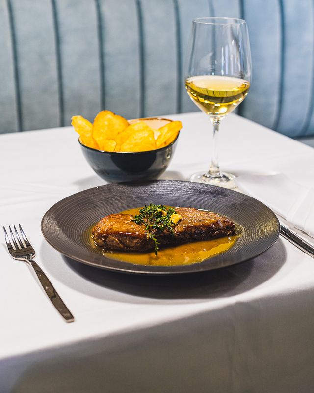 Já os carnívoros encontram, por exemplo, um “bife quase à portuguesa”, da vazia, com molho inspirado no clássico molho à portuguesa e acompanhado de batatas fritas às rodelas e ovo estrelado. Os vinhos do produtor alentejano Monte da Ravasqueira são sugeridos como harmonização deste e outros pratos, de um menu em que todas as regiões vínicas do país estão representadas, do Dão aos Açores.