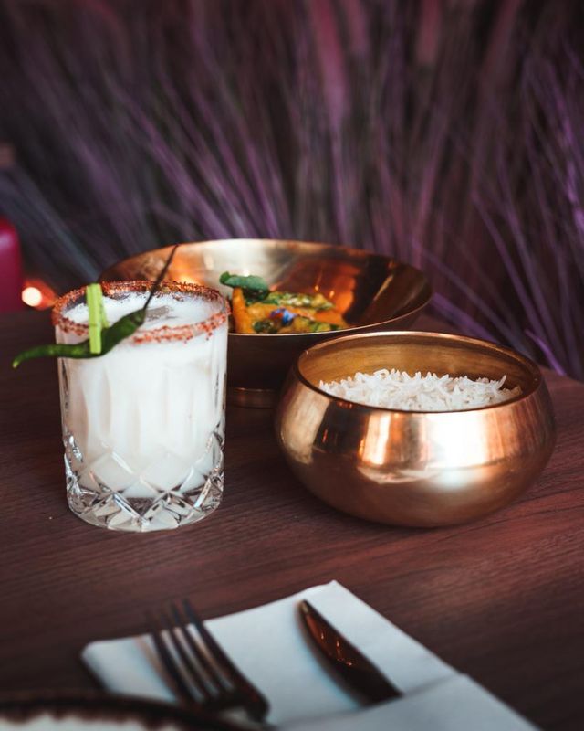 Do menu, o chef sugere ainda os suculentos chicken tikka, lamb shank (pernil de borrego com toque de natas e especiarias) e tandoori chicken (frango grelhado com ervas indianas e especiarias. Para acompanhar a refeição, há bebidas à base de iogurte, limonada e cervejas indianas, cocktails de autor com especiarias e vinhos portugueses. Entre as sobremesas são de provar a kulfi (manga, pistachio e chocolate) e a gulab jamun (pastel indiano com manga fatiada).